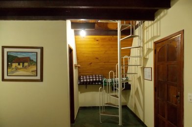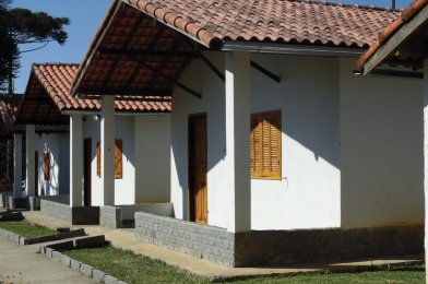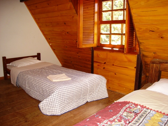 Chalé adaptado para portadores de necessidades especiais Capacidade para 4 pessoas ou 6 pessoas 1 cama de casal e 2 camas de solteiro ou 1 cama de casal e 4 camas de solteiro ou 6 camas de solteiro